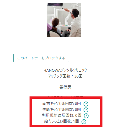 ペナルティは歯科医院とパートナーによるキャンセル処理により決定され、「キャンセル原因」と「キャンセル種別」に基づいて、段階的に付加されます。