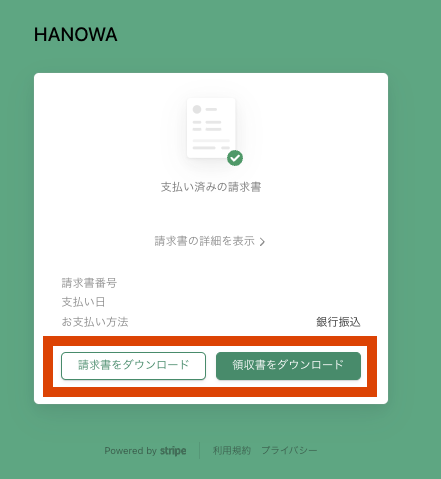 毎月送付の請求書メールからダウンロードが可能です。※領収書についてはお支払い完了後に閲覧可能となります。
