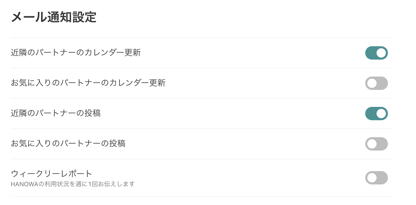 (2)通知をOFFしたいメールのスイッチをオフ(グレー)にします
