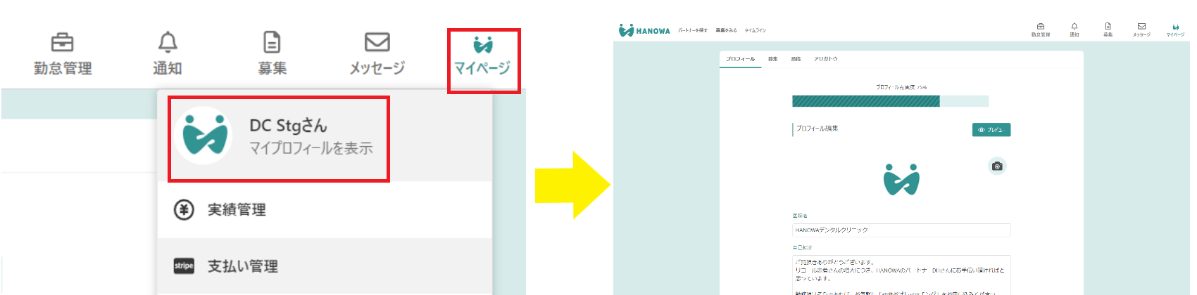 右上「マイページ」から 「マイプロフィール」をクリック!