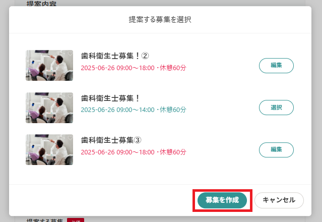 ①募集カレンダーに登録している日付と同じ日付で提案している
