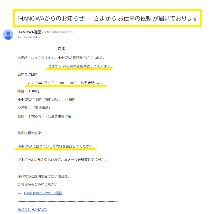 スカウトメッセージや、 募集カードからの連絡のみでは、勤務確定ではありません。