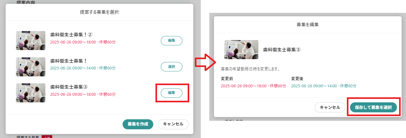 ①募集カレンダーに登録している日付と同じ日付で提案している
